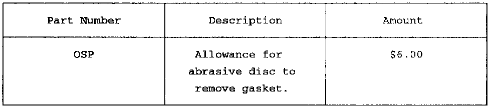A tool allowance of $6.00 per vehicle is being given to purchase 3M(TM) ROLOC(TM) bristle discs or equivalent for use in removing the old engine front cover gasket. If these disks are purchased and used, claim this allowance by entering information from the table shown:
