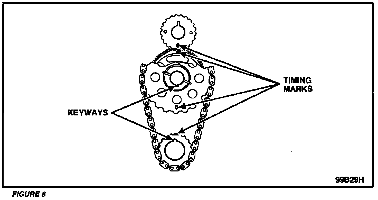 4. Make sure the timing marks and the keyways are aligned. See Figure 8.