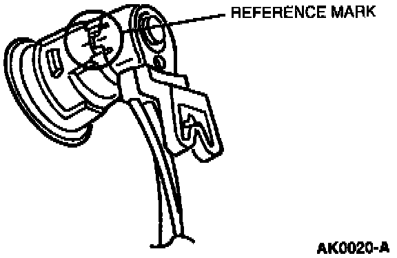 6. Before disassembly of the door lock cylinder switch from the door lock cylinder, mark the position of the front door latch operating lever and door lock cylinder switch as shown in the following illustration. The door lock cylinder switch can be installed in more than one position on the door lock cylinder. If not correctly positioned, the door lock cylinder switch will not operate properly. If replacing the door lock cylinder switch, mark new door lock cylinder switch exactly as old door lock cylinder switch.