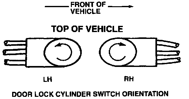 2. Install door lock cylinder to vehicle with door lock cylinder switch oriented as shown in the illustration, reversing Removal procedure.