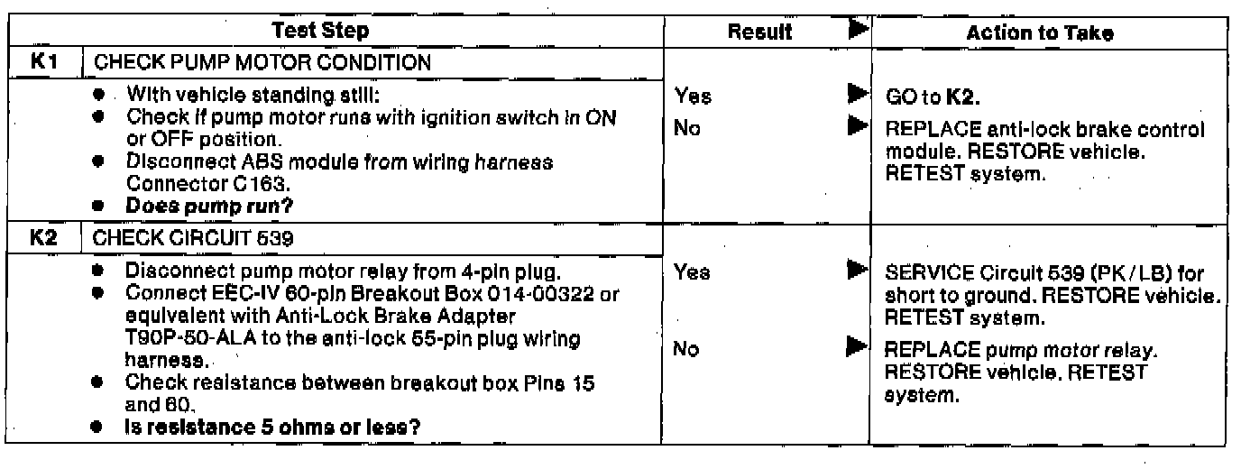 K Warning Lamp Sequence Normal Pump Motor Runs Continuously