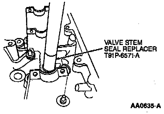 7. Install new valve stem seals using Valve Stem Seal Replacer T91P-6571-A.