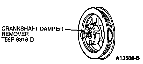 29. Install Crankshaft Damper Remover T58P-6316-D on crankshaft pulley (6312) and pull crankshaft pulley from crankshaft.