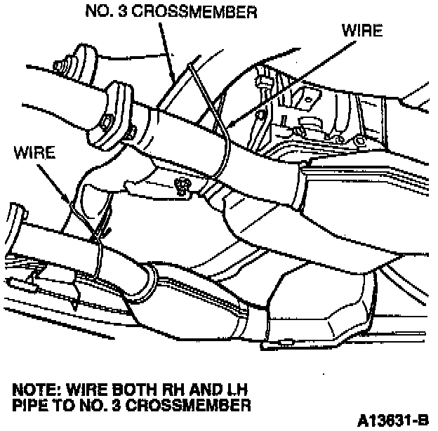 22. Lower exhaust and secure to crossmember in positions shown with wire.