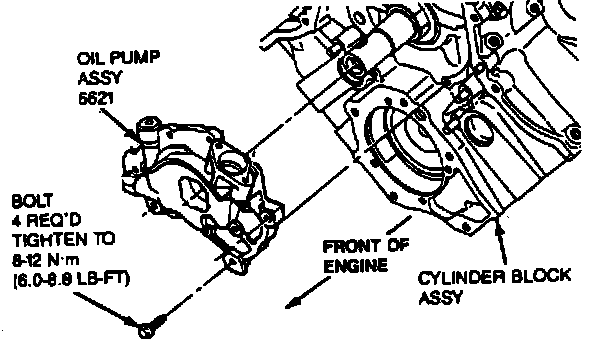 3. Remove four bolts retaining oil pump (6600) to cylinder block (6010). Remove oil pump.