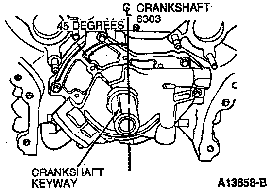 NOTE: With crankshaft in this position, no piston will be at top dead center (TDC).