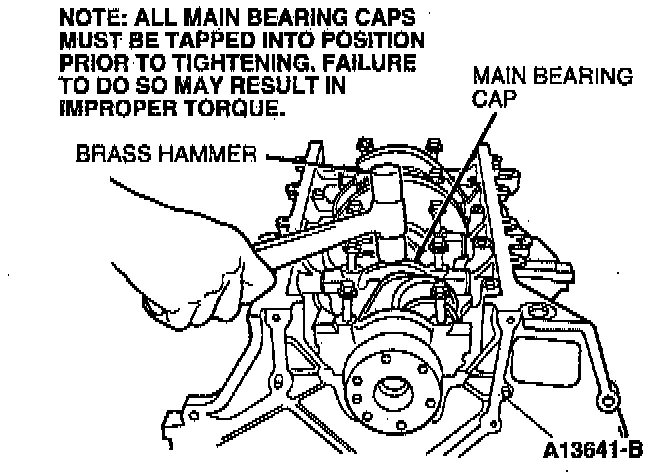 4. Install main bearing caps. Tap main bearing caps with a brass hammer to seat caps properly.