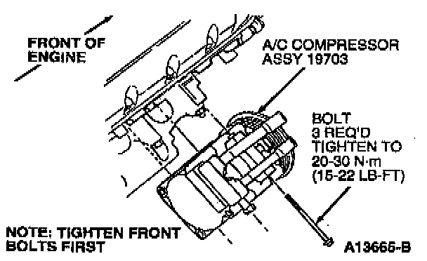 45. Install A/C compressor and tighten three bolts to 20-30 Nm (15-22 ft. lbs.).