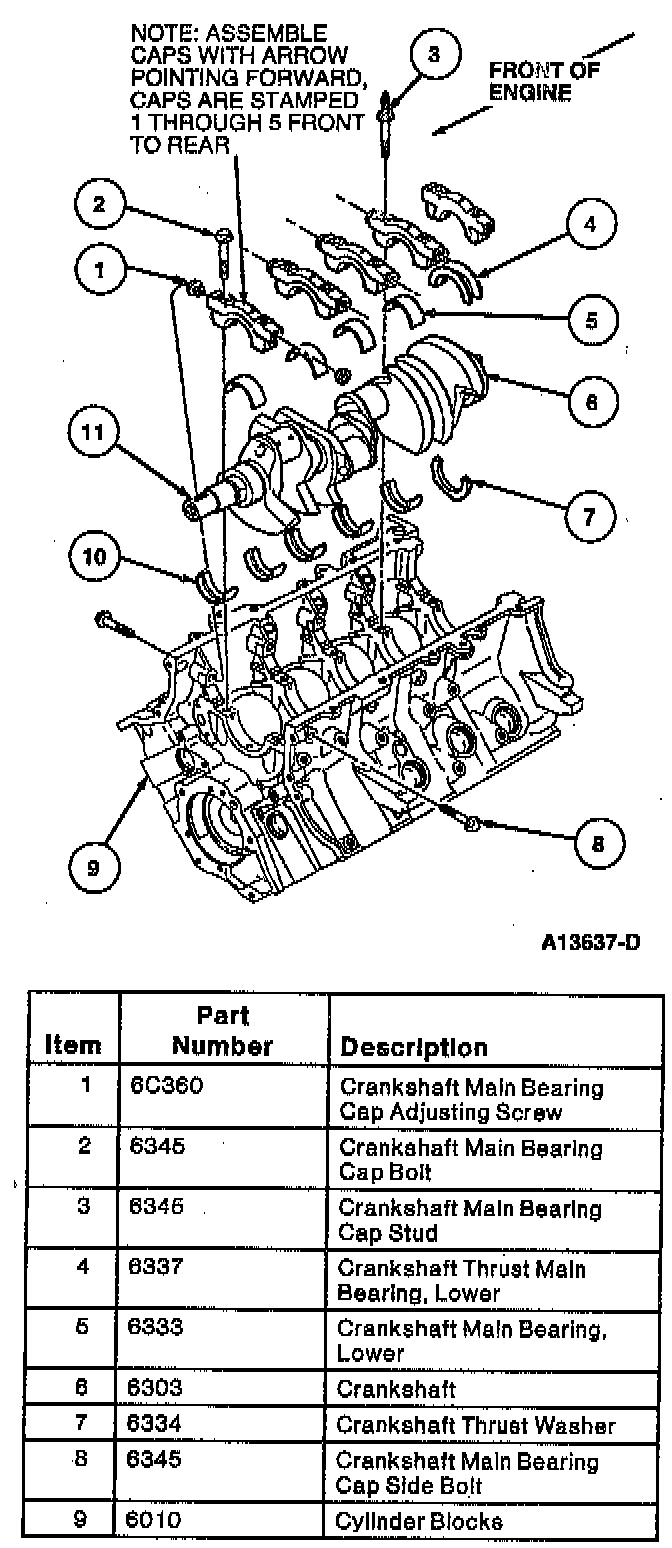 NOTE: Crankshaft main bearing cap adjusting screws must be bottomed on main bearing cap prior to installation of main bearing cap.