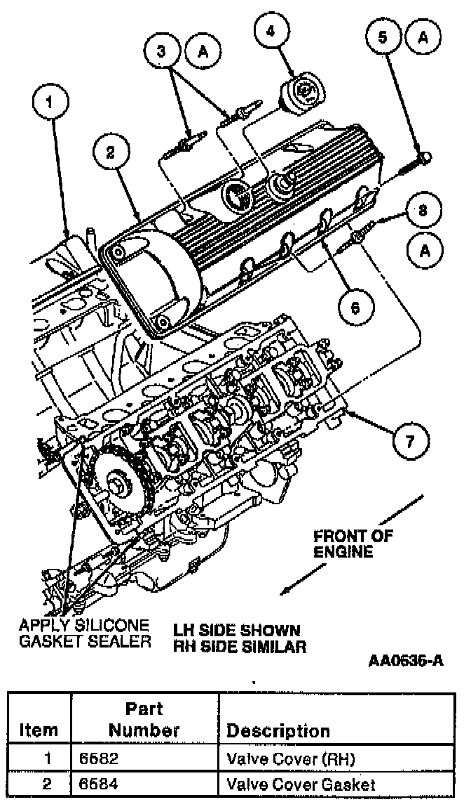 ^ Silicone Gasket and Sealant F6AZ-19562-AA or equivalent meeting Ford specification WSE-M4G323-A6 must be applied to crankshaft keyway prior to installing crankshaft pulley.
