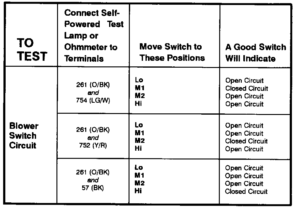 Blower Motor Switch - Component Testing Procedure: