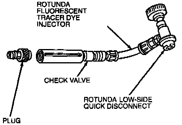 Rotunda Fluoro-Lite(R) for R-134a/PAG A/C Systems 164-R3712 or equivalent may be introduced into the A/C system using Rotunda R-134a Fluorescent Tracer Dye Injector 164-R2610 or equivalent. Inject the dye while charging the system and check for leaks as follows: