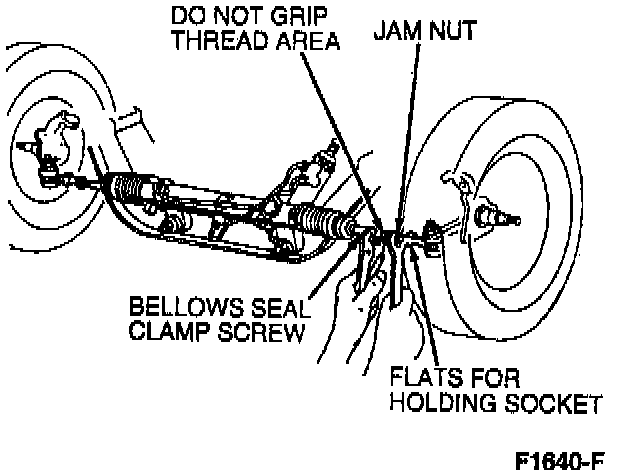 3. Adjust the LH and RH tie rod end lengths until each wheel has one-half of the desired total toe specification. For correct toe setting, refer to Specifications.