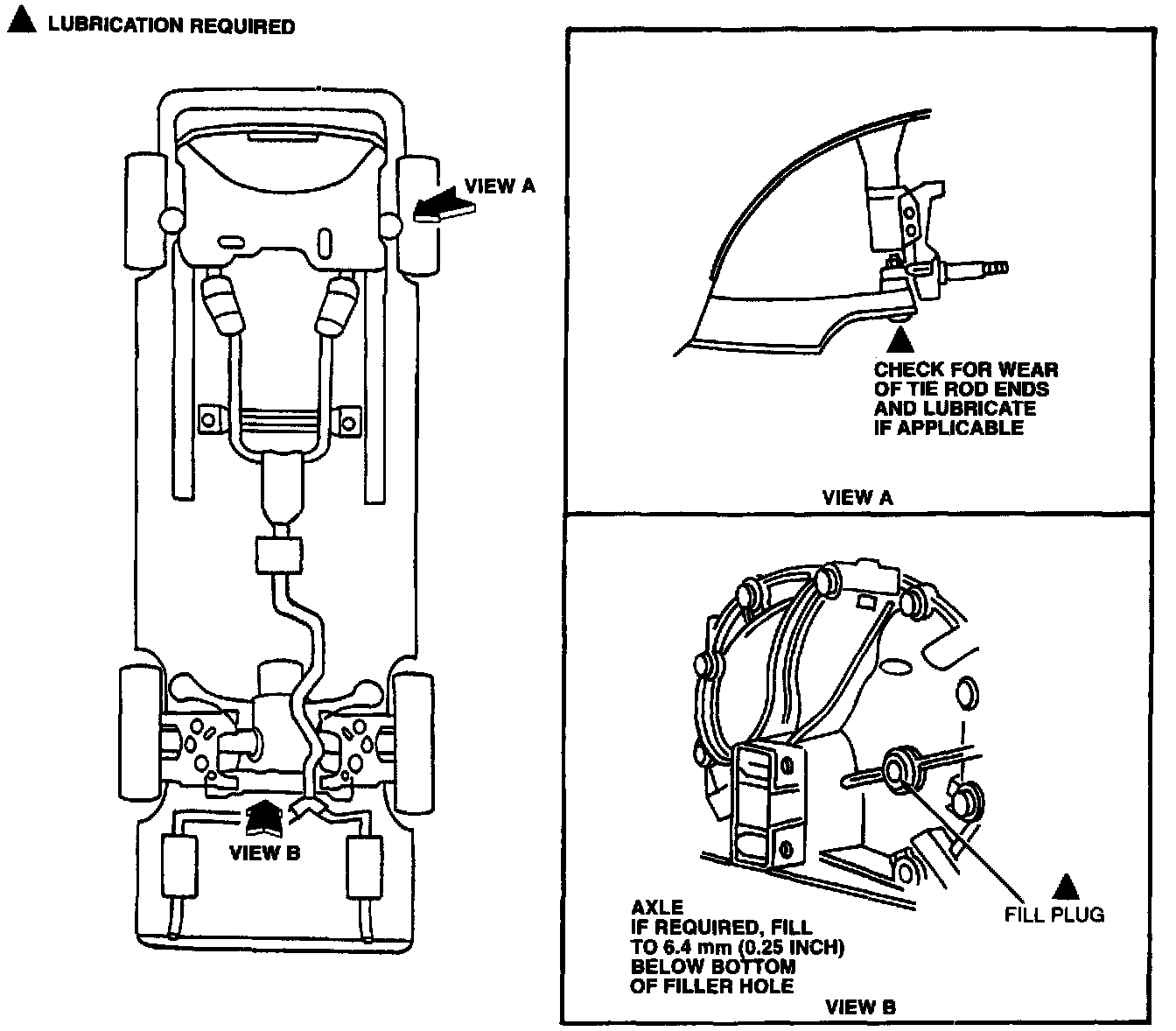 The illustrations show typical chassis and engine service and lubrication points. Vehicles with optional or special equipment may have slightly different or additional lubrication points.