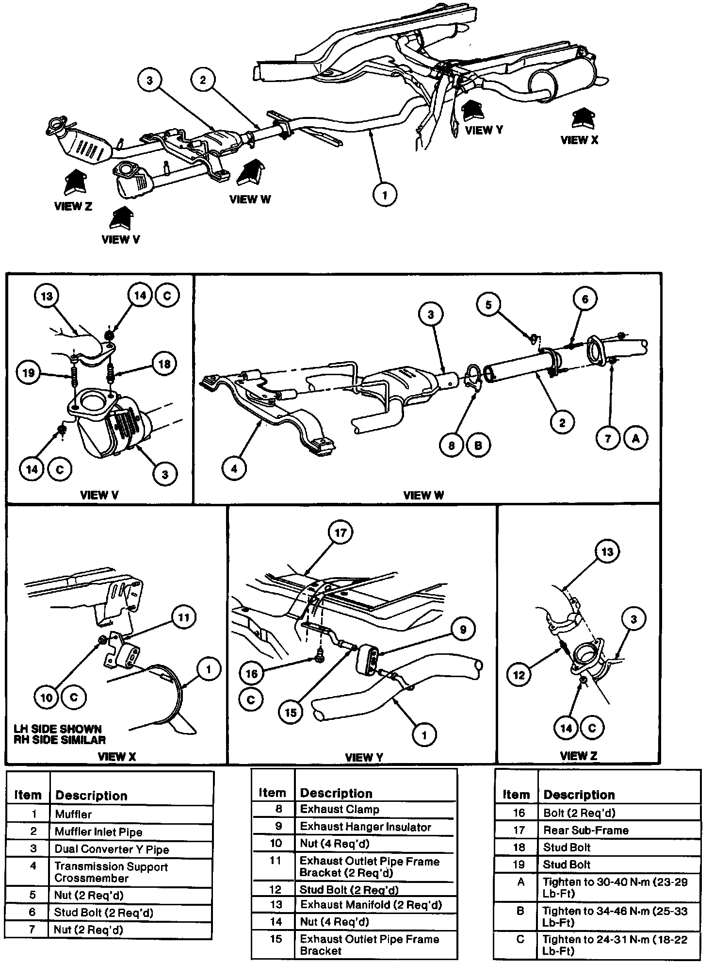 5. Remove four nuts retaining dual converter Y pipe flanges to the exhaust manifolds.