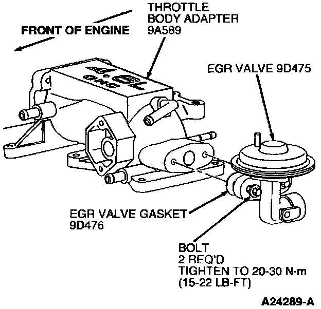 4. Install two bolts retaining EGR valve. Tighten bolts to 20-30 Nm (15-22 lb ft).
