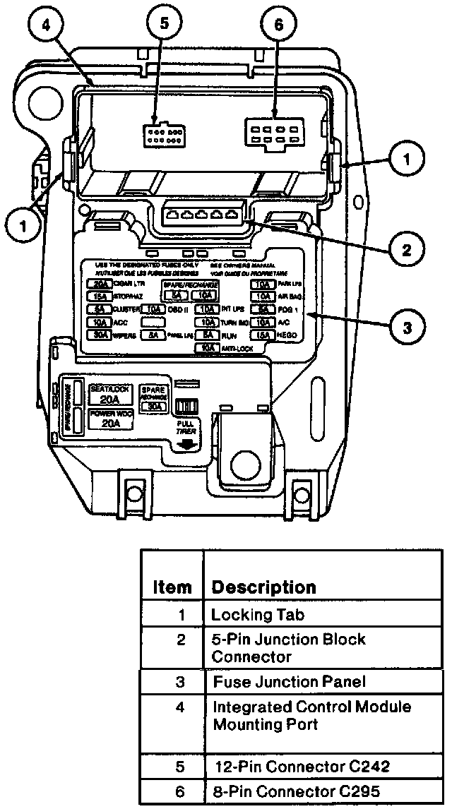 The integrated control module is mounted to the fuse junction panel which is mounted below the instrument panel between the steering column and the driver door.