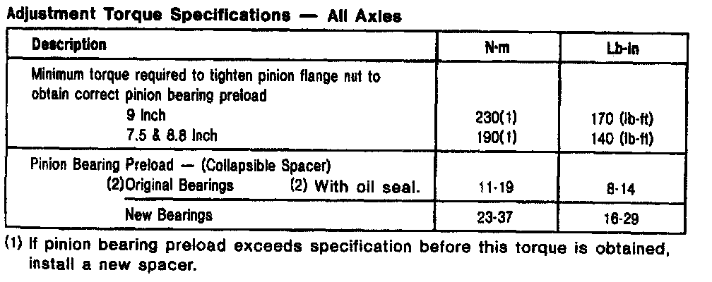 Ford 8.8 Inch, Pinion Bearing Preload: