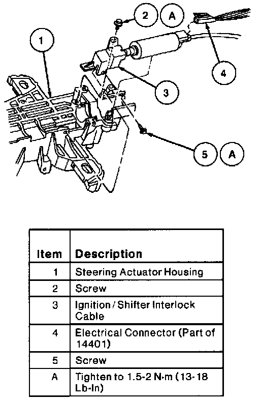 CAUTION: Do not remove the steering column, steering wheel and driver side air bag module as an assembly from the vehicle unless the steering column is locked to prevent rotation, or lower end of steering shaft is wired in such a way to prevent the steering wheel from being rotated.NOTE: All steering column components are assembled with fasteners. They are designed with a thread-locking system to prevent loosening due to vibrations associated with normal vehicle operation.