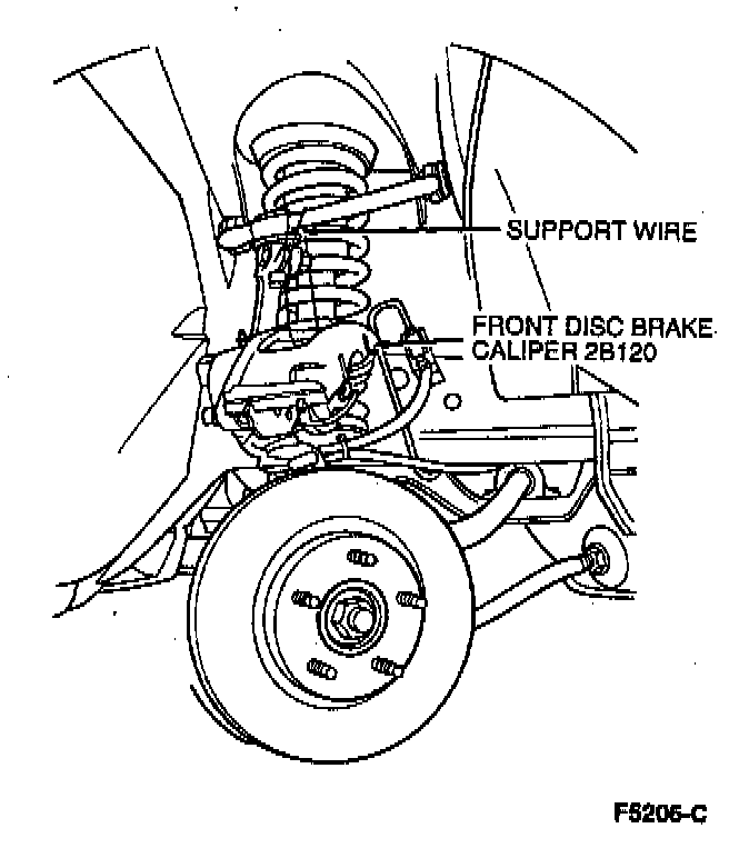 4. Remove disc brake caliper and front disc brake rotor. See Brakes and Traction Control. Support disc brake caliper with wire.