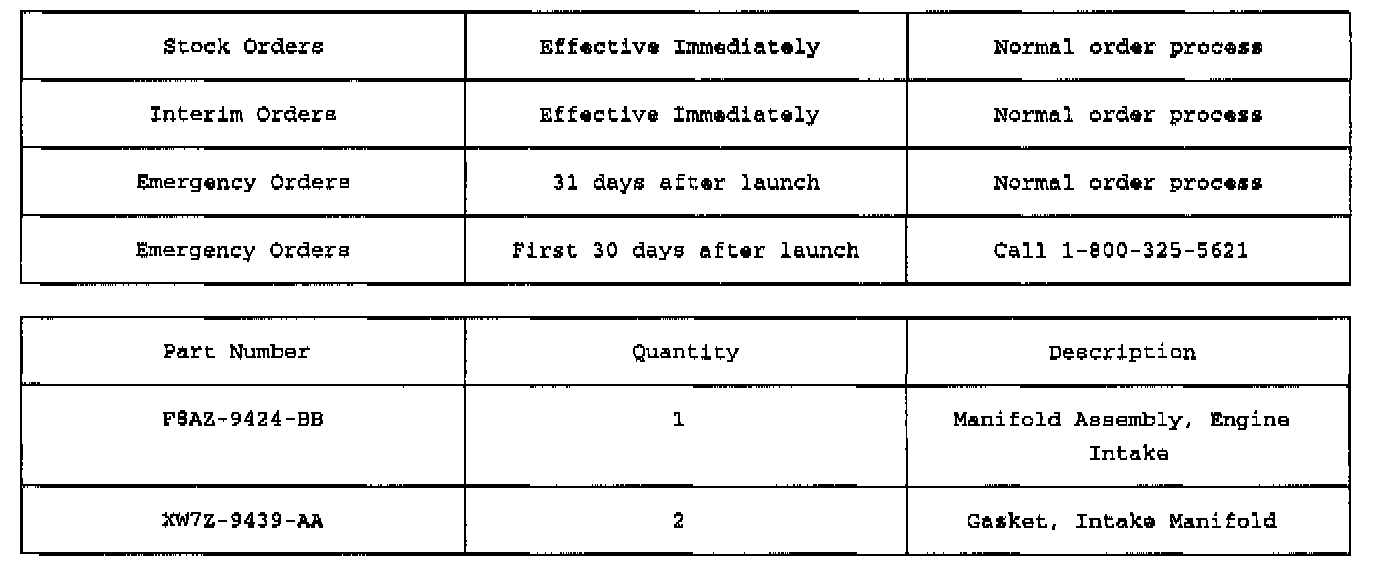 Hold the removed intake manifold until the claim is paid and the Parts Department receives WPRC "parts disposition instructions" on your daily Parts Advice Register (Overnight Messages). Direct questions on warranty parts returns to the WPRC at 1-800-416-9772.