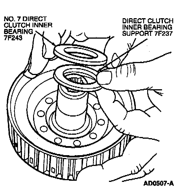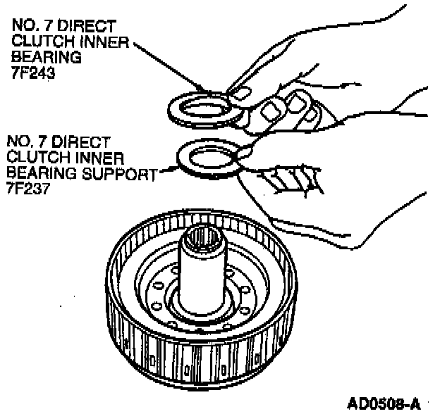 1. After removing direct clutch hub, remove No. 7 direct clutch inner bearing and direct clutch inner bearing support.