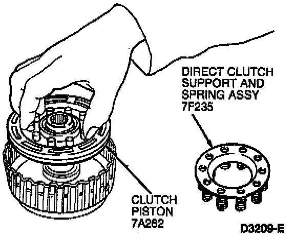4. Remove direct clutch support and spring and clutch piston from direct clutch cylinder.