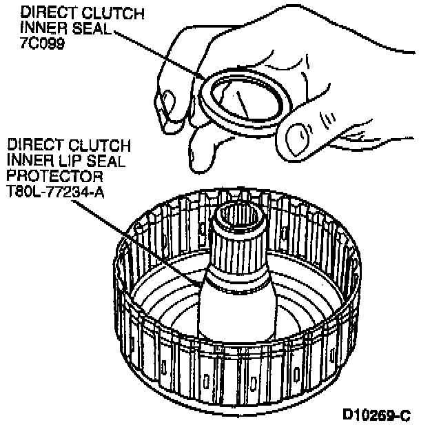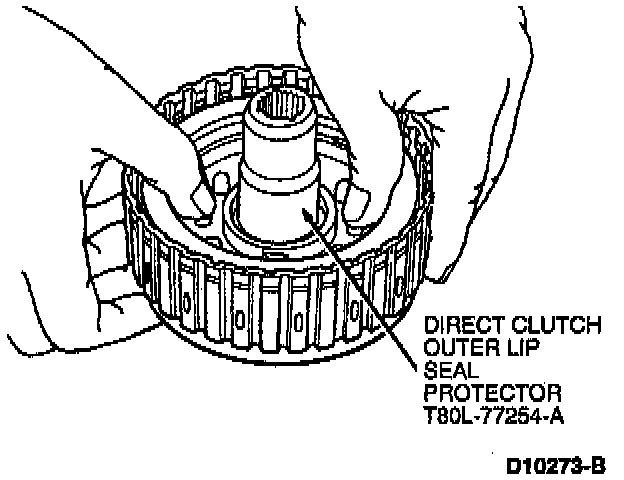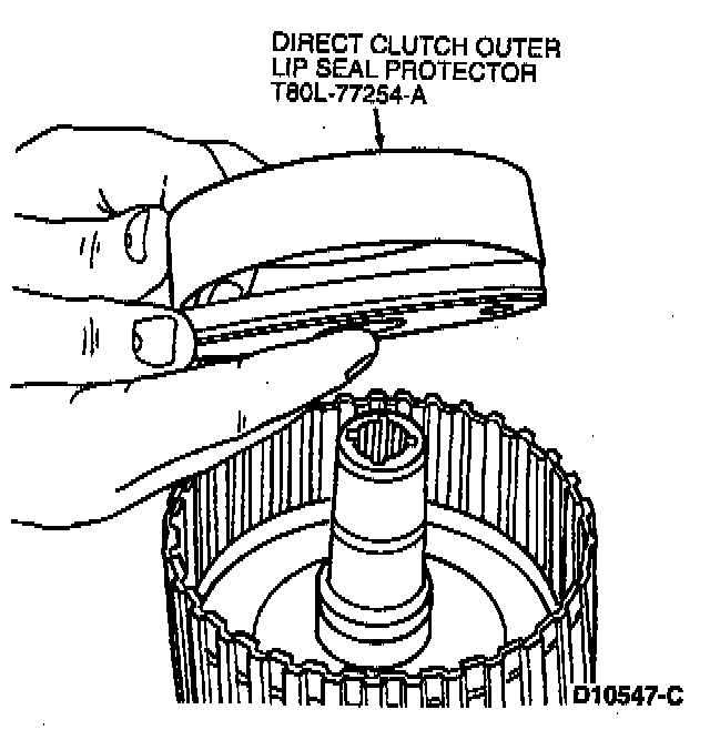 a. Position Direct Clutch Inner Lip Seal Protector T80L-77234-A over direct clutch cylinder.