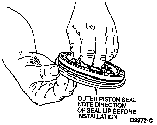 2. Install clutch piston outer seal. Note direction of sealing lip before installation. The lip should point toward bottom of clutch cylinder.