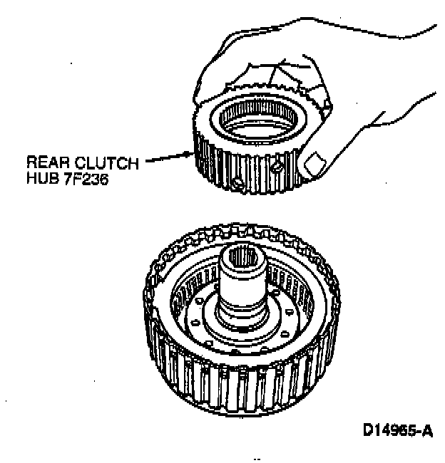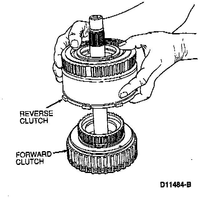 b. Position tool in the direct clutch and push the clutch piston to the bottom of the direct clutch cylinder using even thumb pressure.