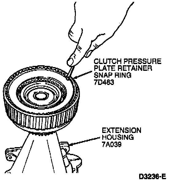 2. Remove clutch pack clutch pressure plate retainer snap ring.