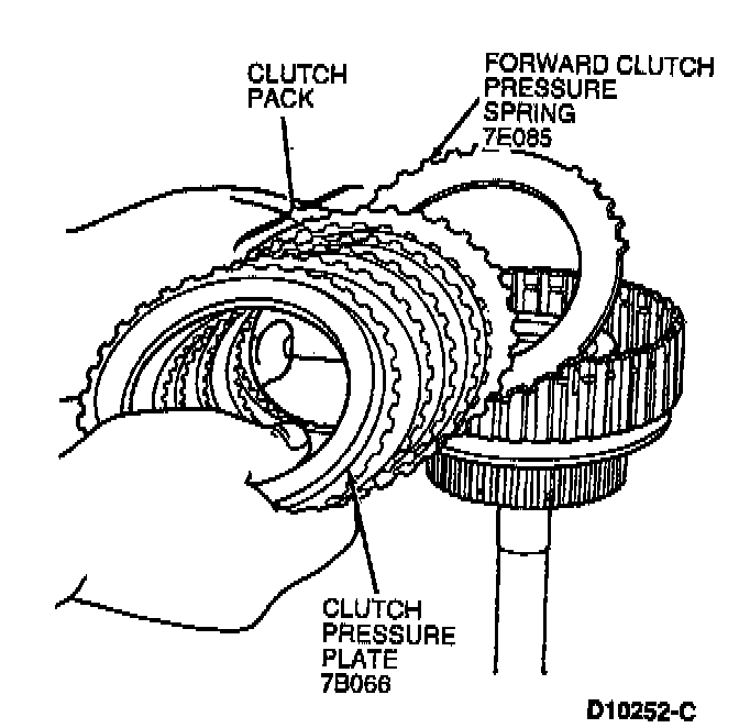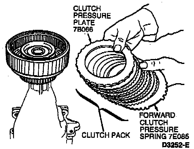 3. Remove clutch pack, clutch pressure plate and forward clutch pressure spring.