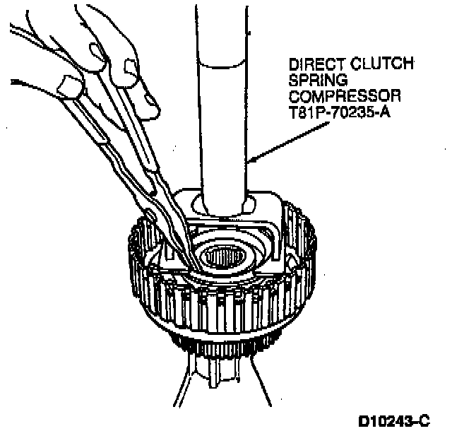 4. Compress clutch support and spring using Direct Clutch Spring Compressor T81P-70235-A.