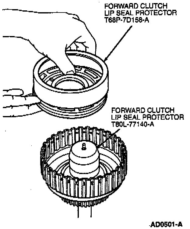 a. Install Forward Clutch Lip Seal Protector (Inner) T80L-77140-A over clutch cylinder hub.