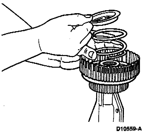 NOTE: Coat piston seals and clutch drum sealing area with petroleum jelly.