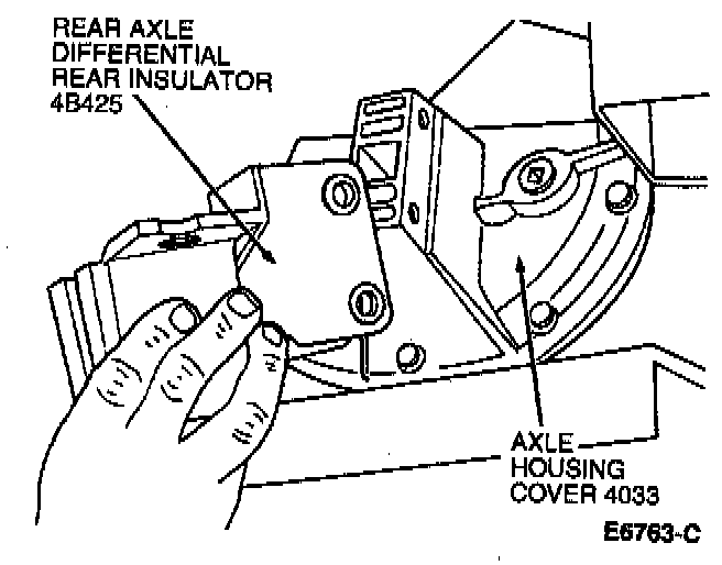 6. Install rear axle differential rear insulator to axle housing cover. Tighten nuts and bolts to 108-136 Nm (80-100 ft. lbs.).