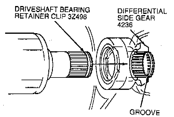NOTE: A non-metallic mallet may be used to aid in seating driveshaft bearing retainer circlip into axle shaft groove. If a mallet is necessary, tap only on outboard CV joint stub shaft.