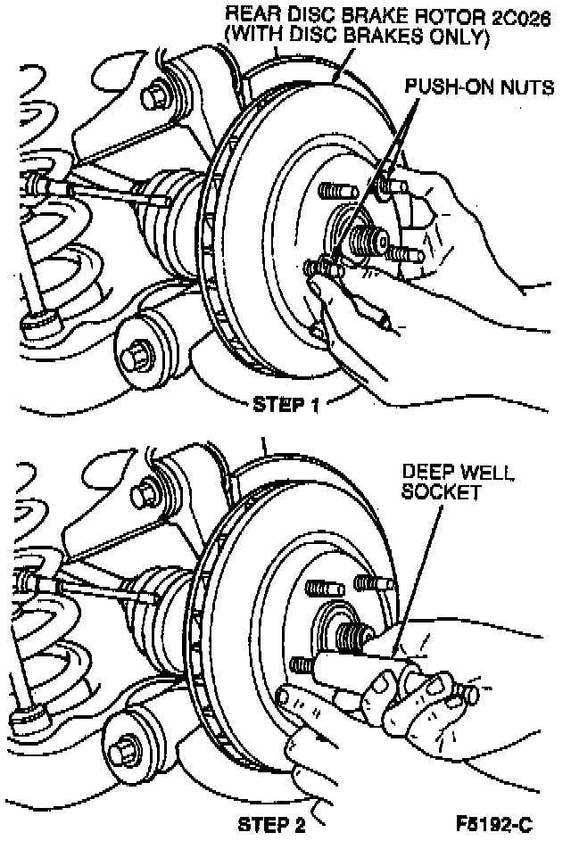 16. Install rear disc brake rotor and new pushnuts.