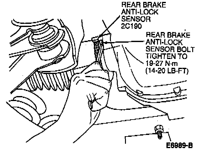 21. Install rear brake anti-lock sensor on each side of rear axle housing. Tighten to 19-27 Nm (14-20 ft. lbs.).