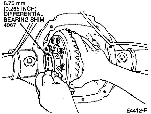 2. Install a 6.75 mm (0.265-inch) differential bearing shim on the LH side.