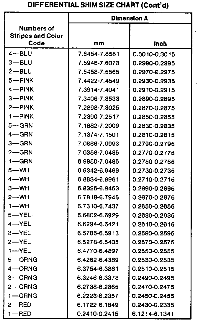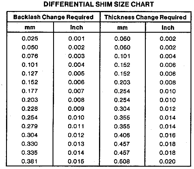 Differential Shim Size Chart: