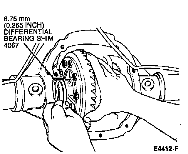 4. Install progressively larger differential bearing shims on the RH side until the largest differential bearing shim selected can be assembled with a slight drag feel.