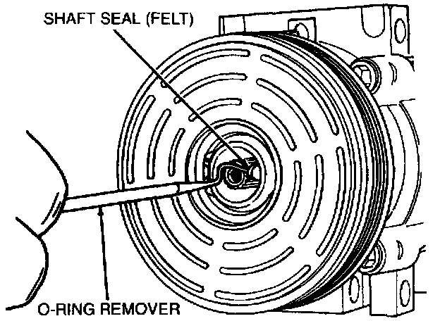 3. Remove shaft seal felt from nose of A/C compressor with O-Ring Remover T71P-19703-C.