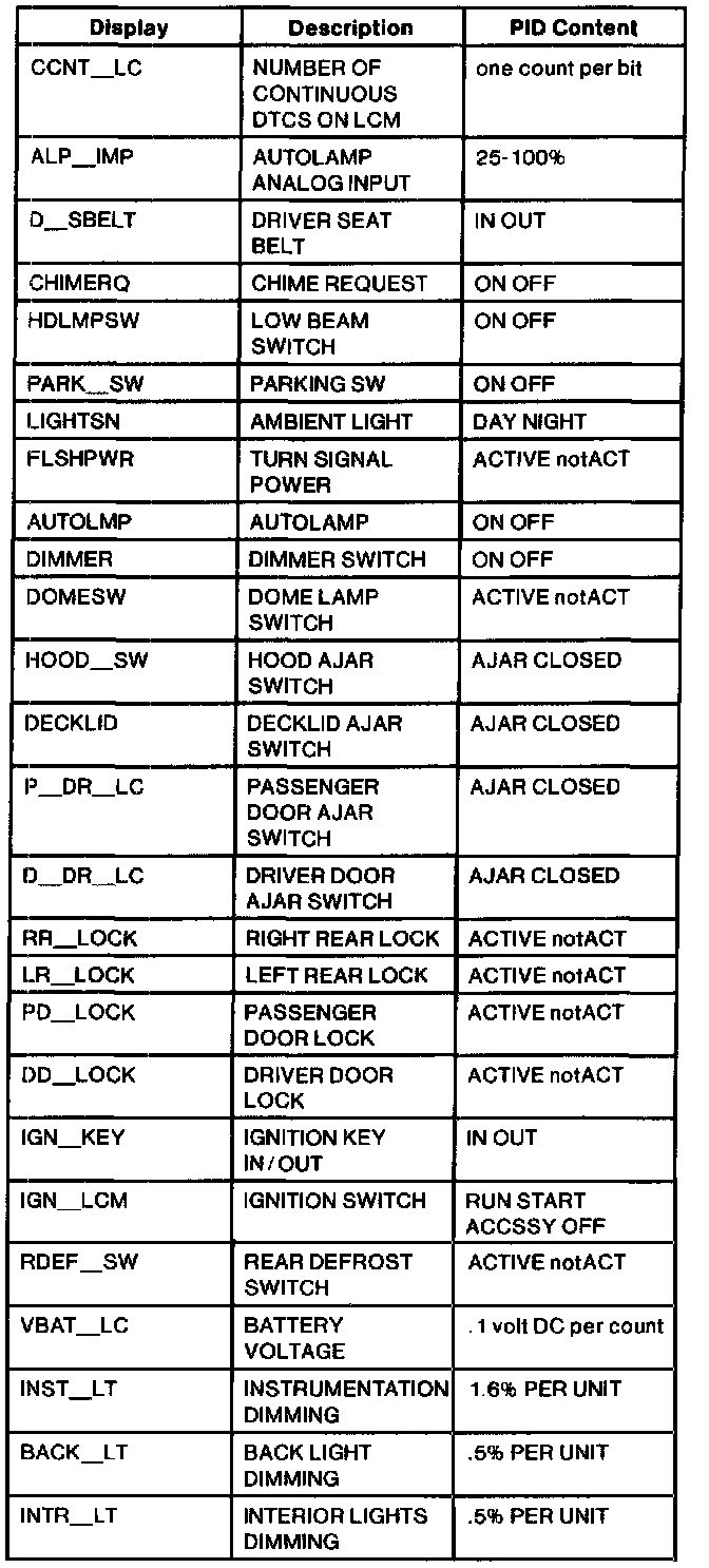 Lighting Control Module Parameter Identification (PID) Index