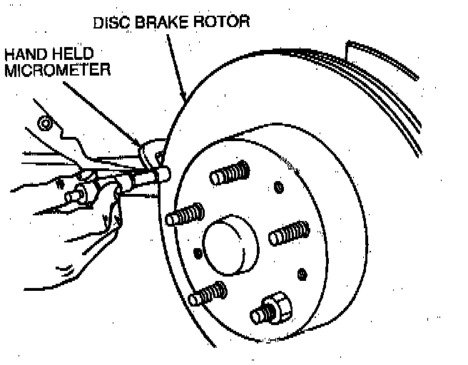 Method 1 - Using a hand held micrometer. A micrometer can be used to measure the disc brake rotor thickness at 12 points approximately 30° apart and 25.4 mm (1 inch) from the outer edge of the disc brake rotor.