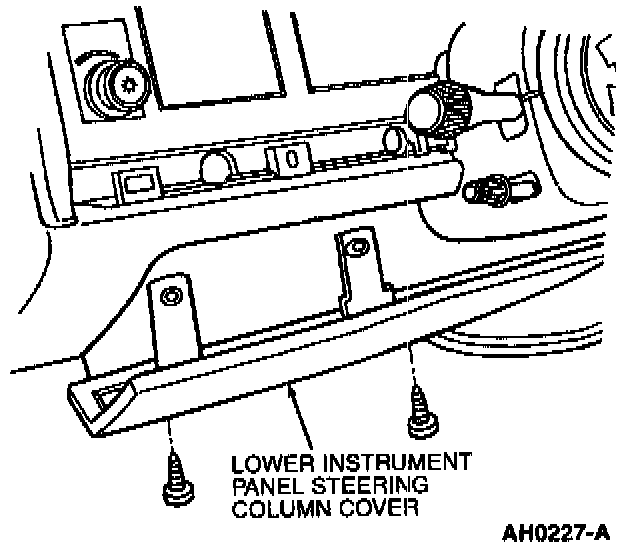 10. Install lower instrument panel steering column cover except lower LH screw and install center instrument panel mouldings.