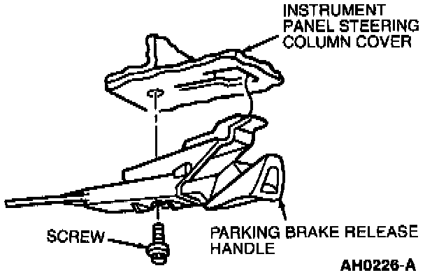 8. Remove parking brake release handle mounting screw from instrument panel steering column cover.