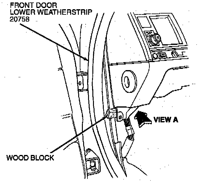 4. Remove wood block from instrument panel and install lower instrument panel retaining bolts.
