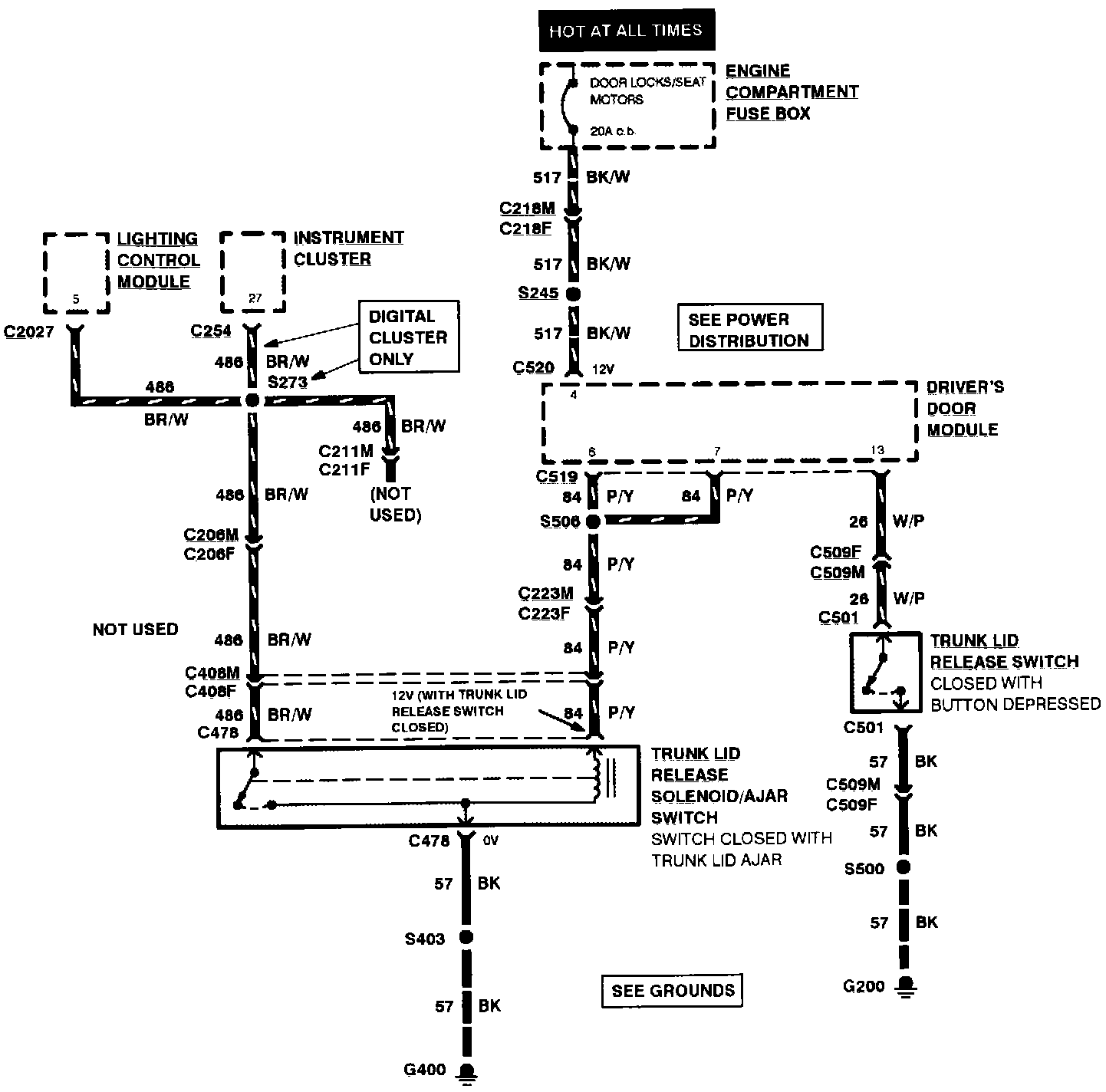 Trunk Lid Release (With Keyless Entry):