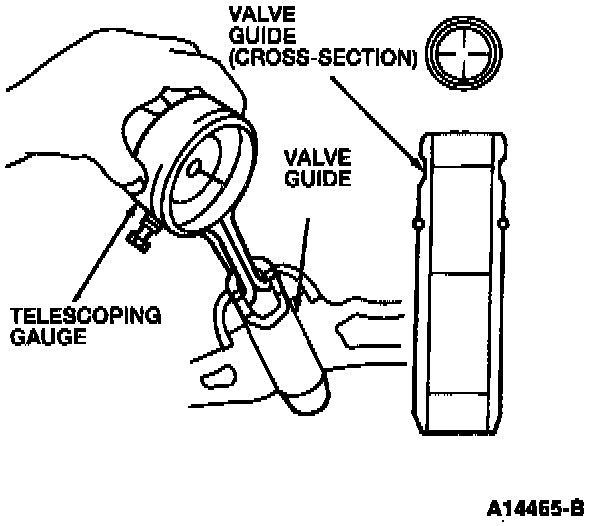 2. If valve guide is not within specification, ream the valve guide and install a valve with an oversize stem or replace the valve guide. Follow Service and Repair procedures.